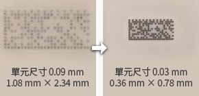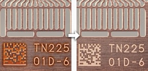 透過波長355 nm的UV雷射,抑制對目標(biāo)物的損傷,實(shí)現(xiàn)高辨識度的刻印。