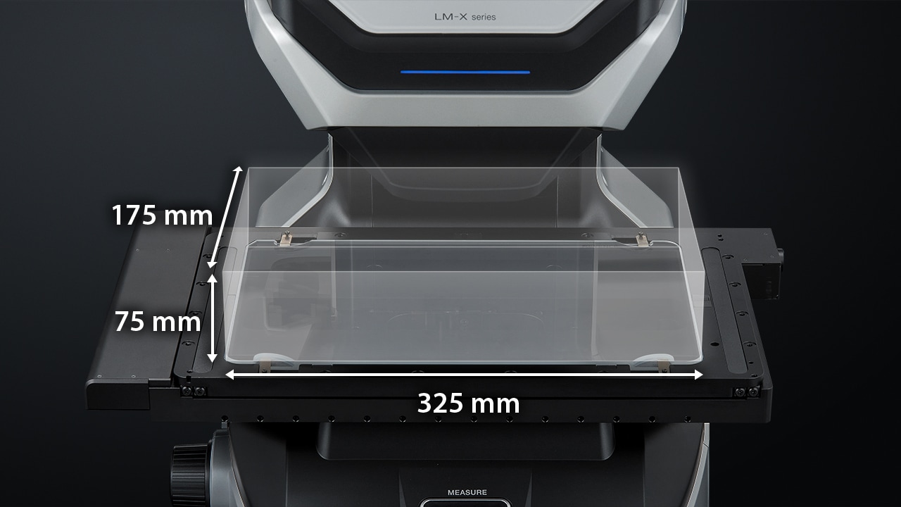 大型載物臺(tái)的最大量測(cè)尺寸為 175 × 325 mm,高度為75 mm。採(cǎi)用了將馬達(dá)與進(jìn)給螺桿摩擦力減至最低的新設(shè)計(jì),不須固定目標(biāo)物,便可進(jìn)行高速且穩(wěn)定的量測(cè)。