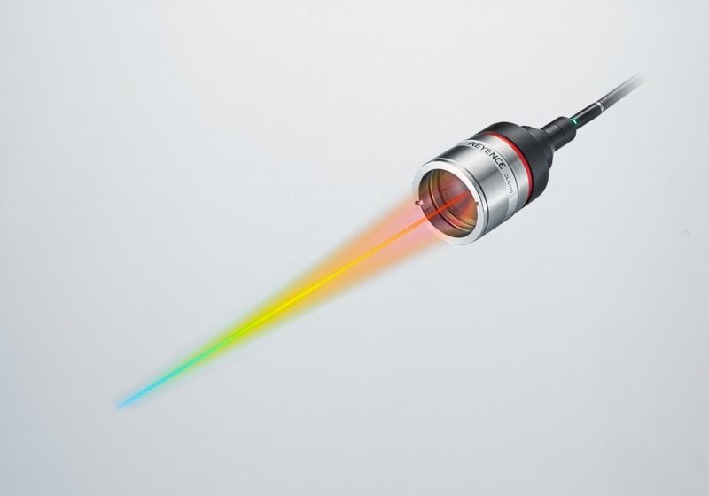 共焦位移感測器在同一軸線上發(fā)射並接收光線。彩色共焦感測器使用能發(fā)出多種顏色(波長)光源,每種顏色都有獨(dú)特的焦距。感測器通過檢測目前聚焦於目標(biāo)物的顏色來測量與表面的距離。KEYENCE 的 CL-3000 系列感測器採用比傳統(tǒng)型號更明亮的光源,無論表面反射率如何,都能在全量程範(fàn)圍內(nèi)實(shí)現(xiàn)穩(wěn)定的測量結(jié)果。