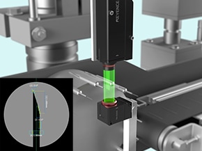 在投光測`受光測都採用W遠心光學(xué)系統(tǒng),可清晰拍攝邊緣,並在目標物錯位時,確保量測精度不變。 可在±20 mm的景深範圍內(nèi),保證性能。