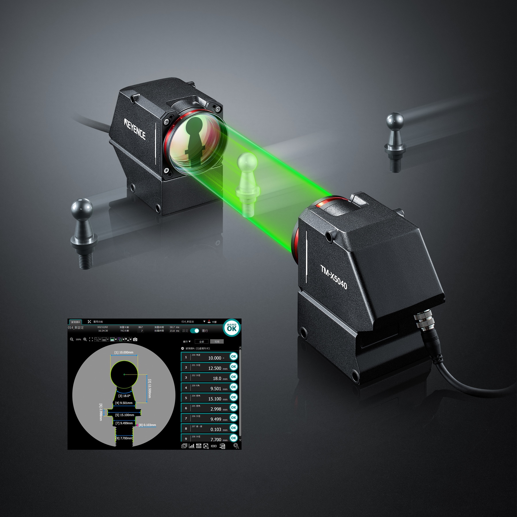 TM-X5000 系列透過捕捉目標外形輪廓,能快速且精確地進行量測。其雙遠心光學(xué)系統(tǒng)可在大景深範圍內(nèi)提供高解析影像,搭配低畸變鏡頭與專用演算法,可於整個視野內(nèi)進行高精度量測,無需精準定位、額外光源或現(xiàn)場校正。系統(tǒng)操作簡易,僅需三步驟即可完成設(shè)定,並內(nèi)建超過 100 種量測與檢測工具,包括 GD&T、公差比對與缺陷距離檢測,適合多種線上量測應(yīng)用。