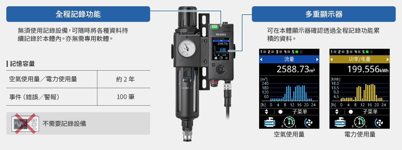 FD-EP 系列在小型機(jī)體內(nèi)內(nèi)建流量感測(cè)器與壓力感測(cè)器,可輕鬆診斷空壓元件的狀態(tài)。搭載專用應(yīng)用模式,可輕鬆實(shí)現(xiàn)氣缸、吸附搬運(yùn)、在席及吹氣的預(yù)防維護(hù)。即時(shí)捕捉並診斷空壓元件的狀態(tài)。還採(cǎi)用完全貫通結(jié)構(gòu),管道中沒(méi)有可能導(dǎo)致壓力損失或堵塞的突起物或障礙物。從微小流量到大流量皆可支援,僅需「選擇管徑」即可選型。顯示放大器搭載高解析度顯示器,無(wú)需操作手冊(cè)即可直觀操作。產(chǎn)品陣容還包括可減少安裝工時(shí)的裝設(shè)支架。氣缸前進(jìn)/後退、吸附搬運(yùn)中的吸附/真空破壞等會(huì)發(fā)生正向反向流動(dòng)的應(yīng)用案例也僅需一臺(tái)即可全部對(duì)應(yīng)。