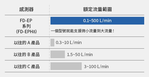 FD-EP 系列在小型機體內內建流量感測器與壓力感測器,可輕鬆診斷空壓元件的狀態(tài)。搭載專用應用模式,可輕鬆實現(xiàn)氣缸、吸附搬運、在席及吹氣的預防維護。即時捕捉並診斷空壓元件的狀態(tài)。還採用完全貫通結構,管道中沒有可能導致壓力損失或堵塞的突起物或障礙物。從微小流量到大流量皆可支援,僅需「選擇管徑」即可選型。顯示放大器搭載高解析度顯示器,無需操作手冊即可直觀操作。產(chǎn)品陣容還包括可減少安裝工時的裝設支架。氣缸前進/後退、吸附搬運中的吸附/真空破壞等會發(fā)生正向反向流動的應用案例也僅需一臺即可全部對應。