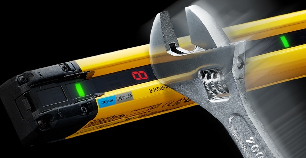 安全光柵GL-V 系列搭載大型線狀指示燈,僅靠本體即可清楚顯示狀態(tài)。當(dāng)入光時顯示綠色,遮光時顯示紅色,即使從遠(yuǎn)處也能一眼辨識光柵是否遮光,有助於迅速復(fù)原作業(yè)。此外,透過顯示模式還可確認(rèn)受光量降低或錯誤狀態(tài),便於及早採取對策。GL-V 系列可廣泛應(yīng)用於設(shè)備啟動、調(diào)整與運(yùn)轉(zhuǎn)階段。雖然尺寸僅為22 mm × 22 mm,卻具備約3 mm 厚的堅固外殼結(jié)構(gòu),展現(xiàn)高耐用性。重新設(shè)計的內(nèi)部光學(xué)構(gòu)造更支援最長15 公尺的檢測距離。