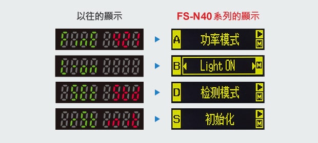 比以往的7段文字顯示更為進(jìn)化。所有人皆可瞬間識(shí)別文字,沒(méi)有說(shuō)明書(shū)亦可輕鬆設(shè)定。此外,由於與非文字部份的對(duì)比明顯,擁有卓越的辨識(shí)性。