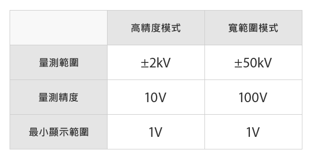 最小量測單位可達到1 V 的高精度量測,最大可量測到±50 kV 的高帶電量工件,量測範圍可對應(yīng)廣泛的需求。