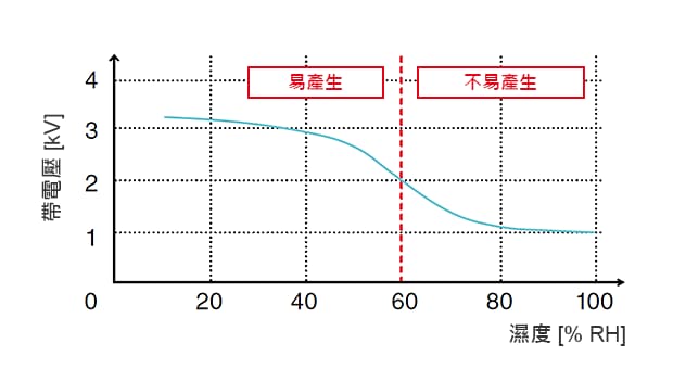 濕度與靜電產(chǎn)生量的關(guān)係圖(代表例)
