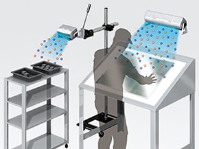 安裝距離200 mm至1000 mm、對象區(qū)域1000 mm可消除靜電。不需供給氣體即可使用,也適合在桌上使用。