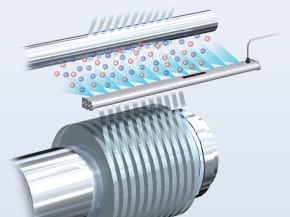 生成離子時(shí)不可或缺的GND板,過去皆安裝於外部,SJ-H系列則率先採用將其內(nèi)建於靜電消除器的「I.R.G.結(jié)構(gòu)」。藉由讓生成的離子毫無減損地往目標(biāo)物方向流動(dòng),而非流向GND板,使得流往目標(biāo)物的離子量增加,實(shí)現(xiàn)高達(dá)過去5倍的高速靜電消除。