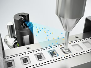 準(zhǔn)備了支援?6 mm軟管的2種管嘴。即便是無法安裝本體的狹窄場所,亦可透過使用軟管,實現(xiàn)單點的除塵和靜電消除措施。