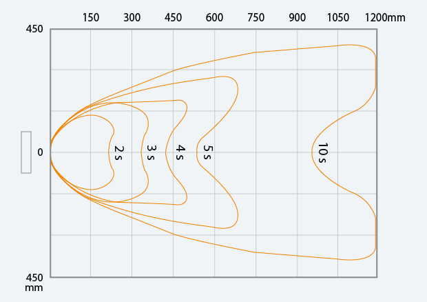 SJ-L005MT + SJ-MS1 靜電消除範(fàn)圍及時間(氣壓 0.5 MPa) 量測條件