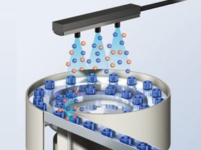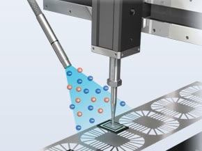 雖然是小型消除頭,但可消除最大外徑600 mm x 1500 mm的大範(fàn)圍靜電。可在1秒以?xún)?nèi)消除1 m以外的靜電。透過(guò)分支達(dá)到裝置內(nèi)部的靜電消除。