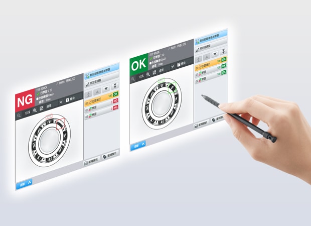 IV3 系列為搭載AI 技術(shù)影像辨別感測(cè)器新一代產(chǎn)品。不論拍照 (成像取得) 或判別檢測(cè)皆由AI 技術(shù)輔助,同時(shí)強(qiáng)化有無(wú)、判別的檢測(cè)能力。檢測(cè)時(shí),只需框選想要強(qiáng)調(diào)的特徵點(diǎn),由AI 輔助取得成像;檢測(cè)時(shí)只需登錄OK/NG 影像各一張,即可完成設(shè)定。使用者不需具備專(zhuān)業(yè)視覺(jué)系統(tǒng)知識(shí),不再需要耗費(fèi)大量精力與工時(shí)即可輕鬆導(dǎo)入運(yùn)用。內(nèi)建鏡頭與照明的一體化設(shè)計(jì),再也不需要搭配外部照明等外部機(jī)器;檢測(cè)時(shí)也無(wú)須擔(dān)心環(huán)境光影響。另外,放大器內(nèi)部搭載高性能CPU;檢測(cè)時(shí)無(wú)須搭配電腦。超小型感測(cè)頭機(jī)種對(duì)應(yīng)50~3000 mm安裝距離,視野範(fàn)圍最大達(dá)2730 X 2044 mm,可活用於各式生產(chǎn)現(xiàn)場(chǎng)。