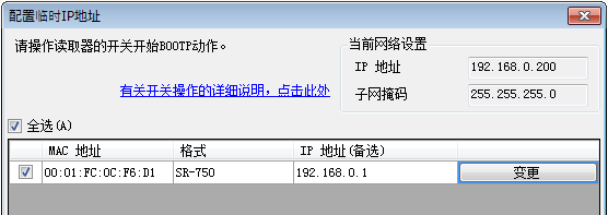 (2) 操作讀碼器開關(guān)來啟動 BOOTP 動作。