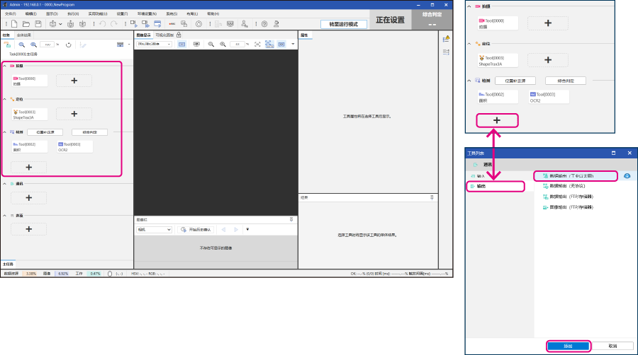 7. 專案傳輸完成後,顯示 [設備查找設定]對話框。然後點擊 [查找 (F)]。自動配置完成後,將自動添加 「Vendor Series」。然後點擊 [OK] 關閉 [EtherNet/IP 設置] 視窗。